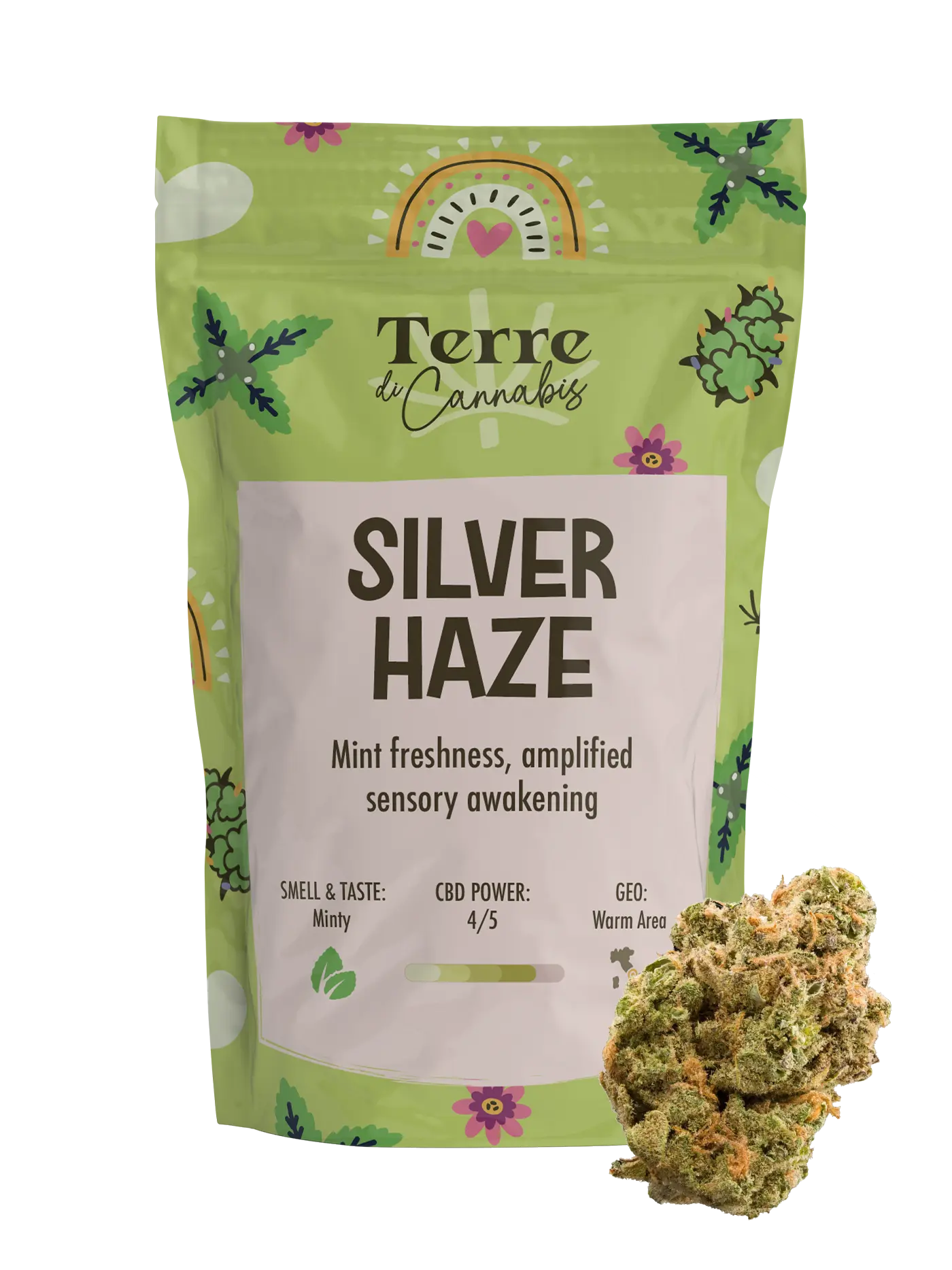 | Silver Haze (sativa) | Profumo fresco di menta con un leggero sottofondo speziato | Euforici e sensoriali: amplifica il benessere e le percezioni | Esperienze sensoriali; perfetta per momenti di relax |